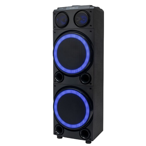 Transformá cualquier reunión en una fiesta con la Sharp PS-990, una torre de sonido con 600W de potencia máxima, efectos DJ, luces de 7 colores y X-Bass para un sonido impactante. Con Bluetooth, entradas USB, modo karaoke, y controles de eco, bajos y agudos, es perfecta para eventos en interiores y exteriores. Su diseño con ruedas y manija facilita el traslado, y sus woofers duales de 10” llenan el ambiente con un audio envolvente y potente. ¡Listo para enchufar y disfrutar!